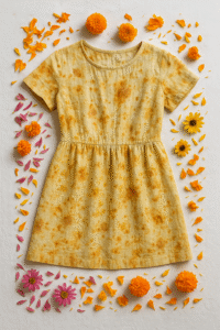 Today, my brand transforms waste flowers collected from temples and wedding ceremoniesOur clothing is designed for all ages, blending contemporary trends with age-old dyeing techniques. Every piece is not only eco-friendly and biodegradable but also toxin-free, making it gentle on your skin and the planet. We use a natural mordant that fixes the color permanently, ensuring your garment stays beautiful over time without compromising on purity.