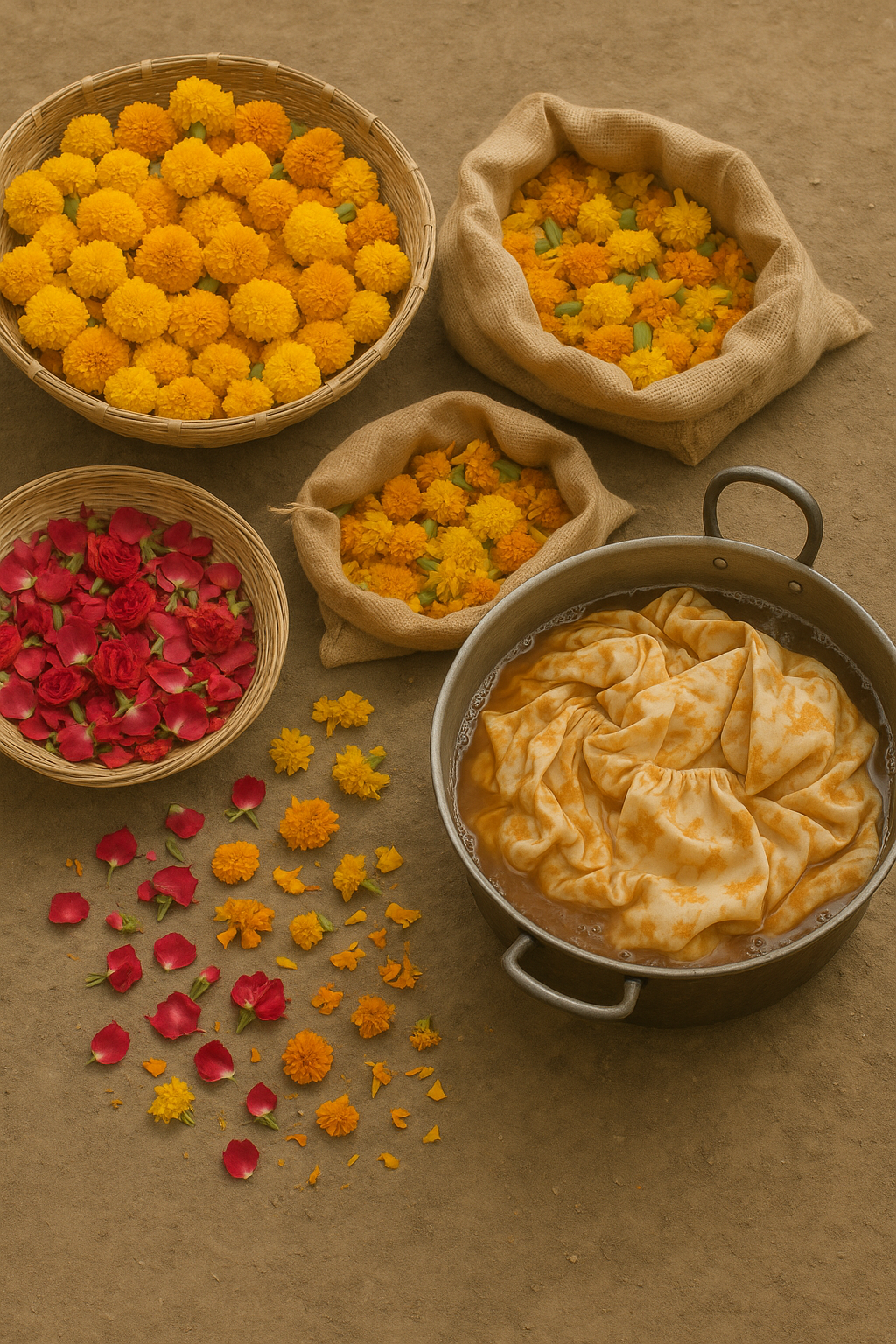 Most are discarded into rivers, landfills, or roadsides, contributing to pollution and organic waste buildup. But now, a quiet, beautiful revolution is underway—turning these sacred waste flowers into natural dyes for sustainable fashion.